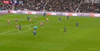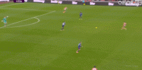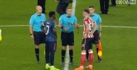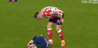 第34分鐘,扎卡被判犯規(guī),欲找倒地的梅里諾理論